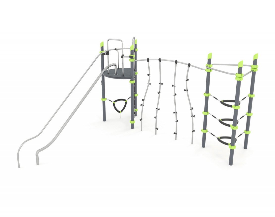 Представляет собой конструкцию, состоящую из элементов, направленных на развитие различных групп мышц. Комплекс оснащен металлическими лазалками и пластиковыми уступами, канатными лестницами.