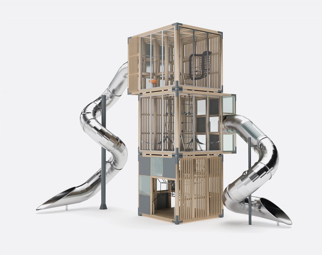 Представляет собой комплекс, состоящий из 3-х секций. Первая секция оснащена канатными стропами с пластиковыми ручками. Вторая — металлическими поручнями и канатом. А на третьей секции расположены уступы и качель-гнездо. Конструкция оснащена также металлическими тоннельными горками.