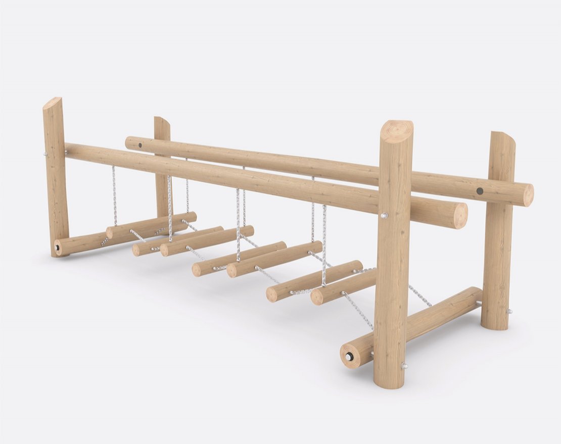 Представляет собой мостик-балансир, состоит из опорных стоек, перекладин и цепных подвесов. Подвесы соединяют деревянные перекладины-ступеньки с брусьями и обеспечивают прочное и качественное крепление.