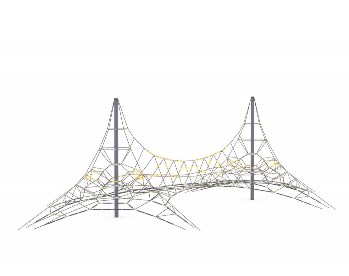 Состоит из опорных металлических стоек и высокопрочного каната. Для большего комфорта, на канат установлены пластиковые уступы.