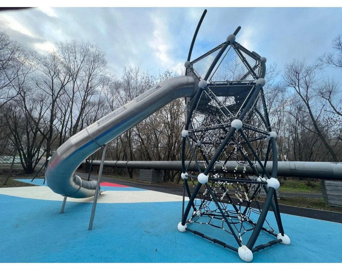 Представляет собой многоярусную пространственную конструкцию, состоящую из металлического каркаса, высокопрочного каната и закрытой тоннельной металлической горки. Для большей безопасности, комплекс оснащен страховочной сетью, а канатная сетка — пластиковыми ручками-уступами.