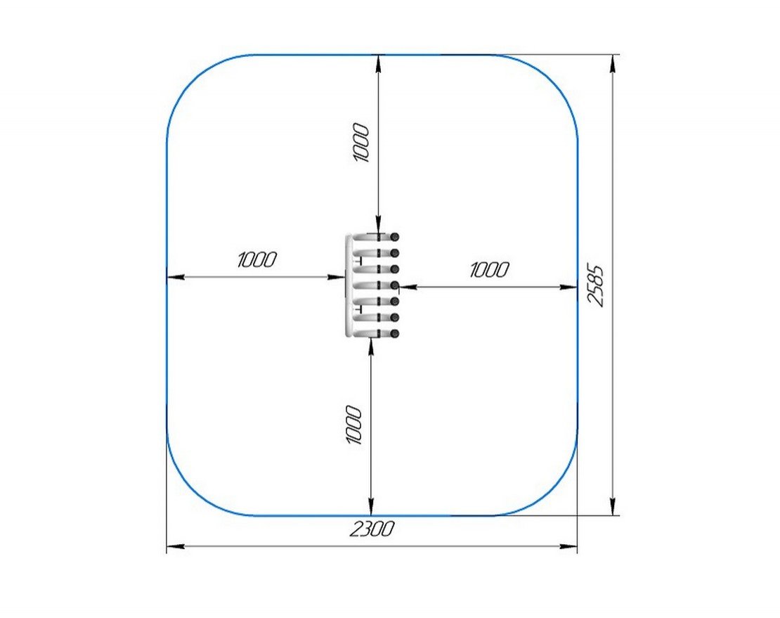 Занимаемая площадь с учетом зон безопасности и приземления: 2585 × 2300 мм