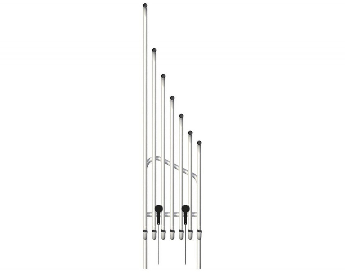 Серия трубок настроена на пентатоническую гамму до мажор, каждая из которых генерирует различный тон с различной громкостью в зависимости от того, насколько сильно вы их ударяете.