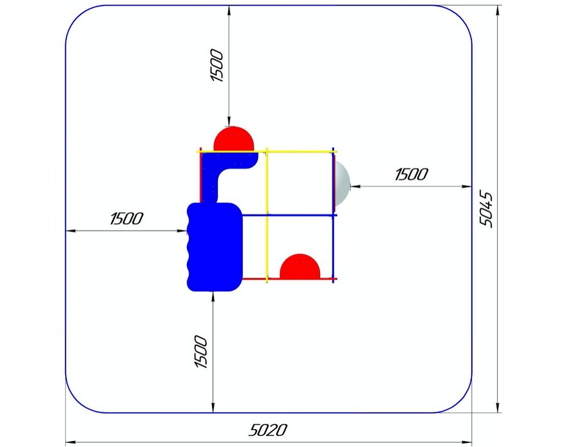 Занимаемая площадь с учетом зон безопасности и приземления: 5045 × 5020мм