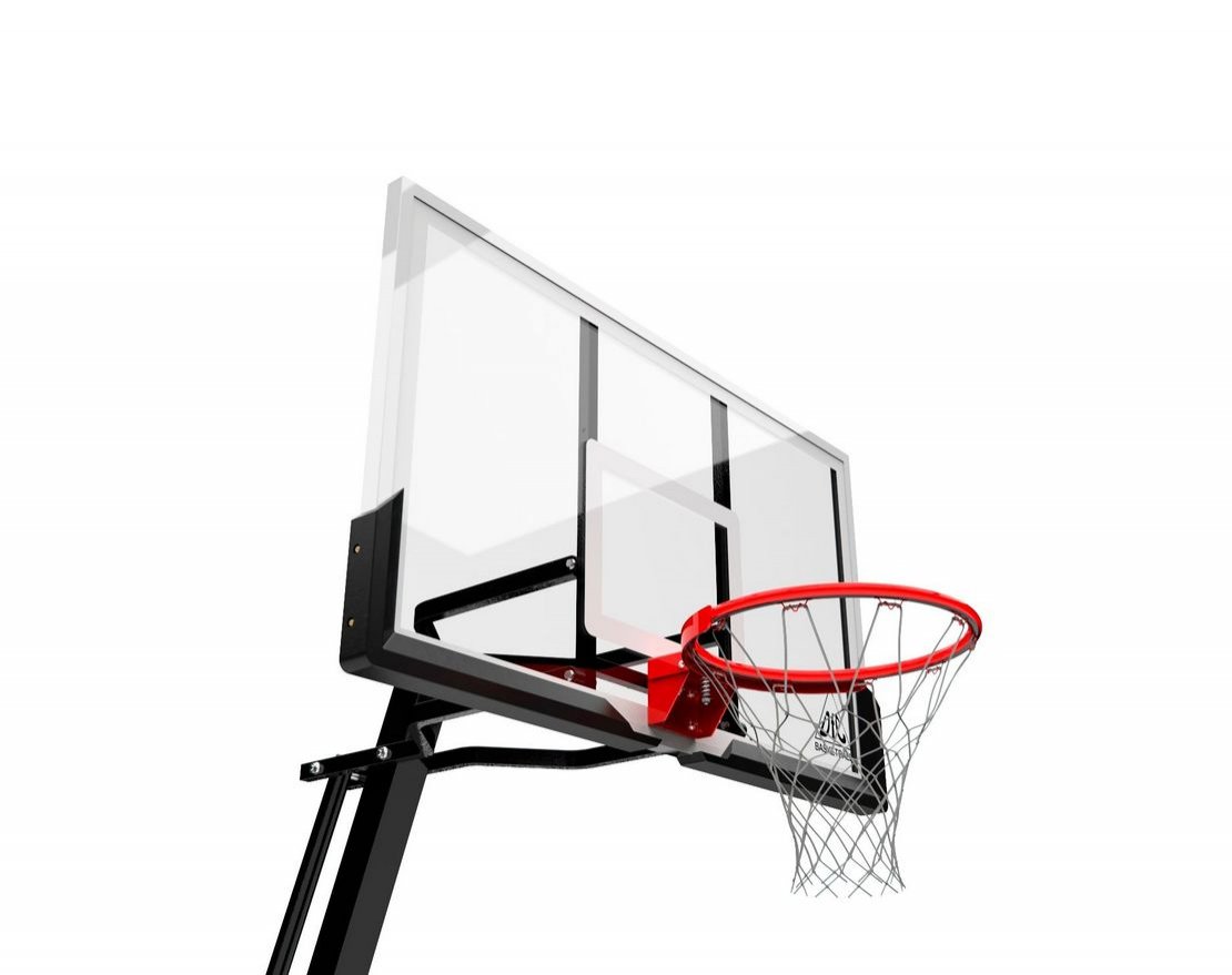 Портативная баскетбольная стойка совмещает в себе мобильность и обеспечивает отскок мяча, как на профессиональной площадке. Благодаря усиленной конструкции удалось добиться увеличенного вылета щита, при сохранении компактности размещения. Он регулируется в диапазоне от 230 до 305 см, имеет защитное покрытие Poly Pade в нижней части. В основание стойки (объем 114,7 л) необходимо залить воду или засыпать песок в качестве утяжелителя.