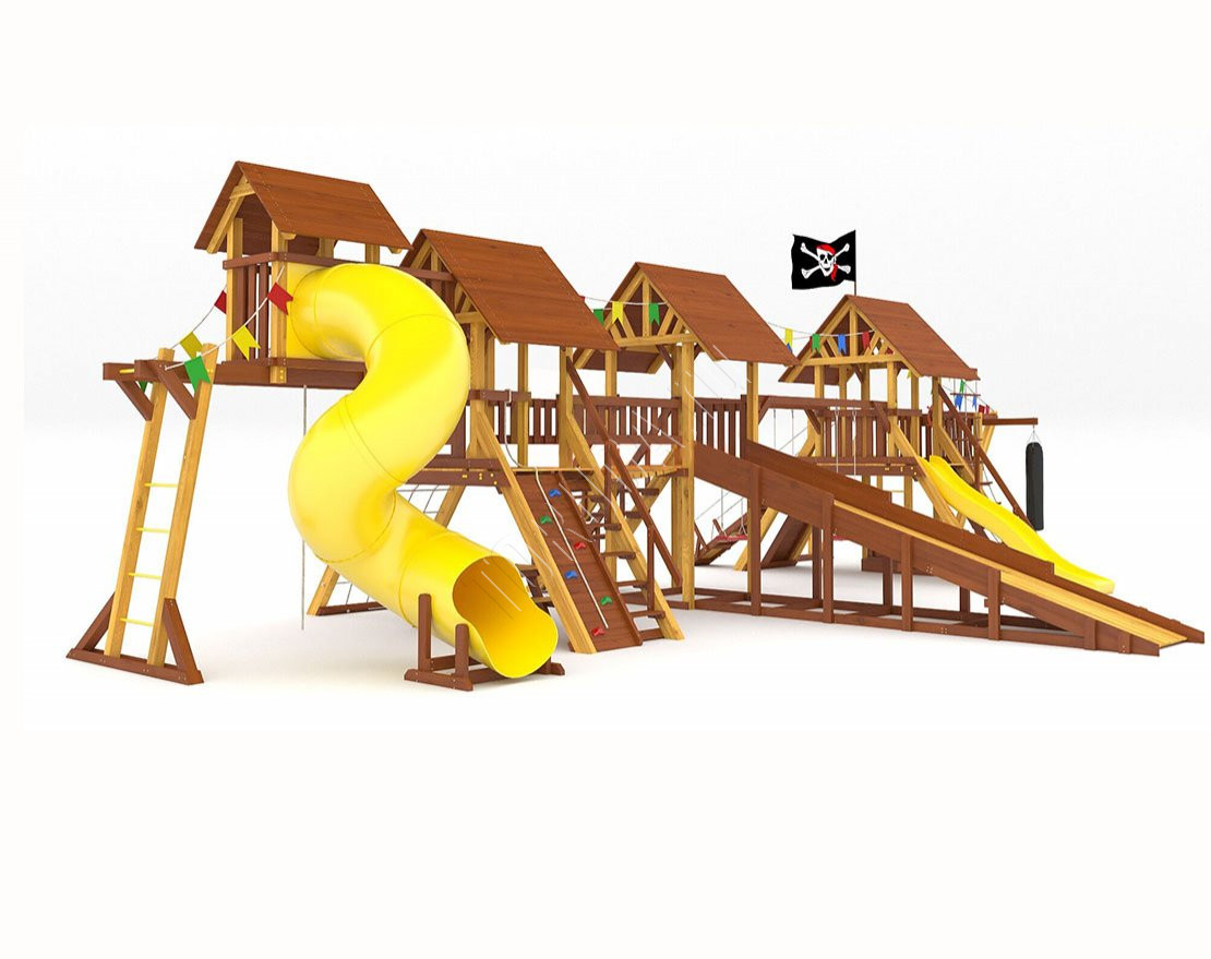 Площадка Галиот 16 обладает довольно широким функционалом (который по желанию можно легко расширить). А на качелях могут кататься даже родители! Детская площадка предназначена для дачи, коттеджа.