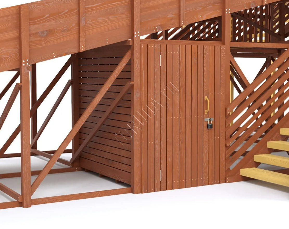Удобное и практичное решение для поддержания порядка на игровой площадке. Надежная конструкция выполнена из качественных материалов, которые защищают инвентарь от снега, ветра и влаги. Компактный размер и продуманное размещение делают это место идеальным дополнением к зимней горке, обеспечивая легкий доступ к аксессуарам.