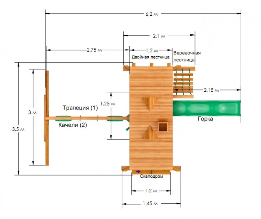 Детская площадка помогает развить координацию, выносливость, дыхание. В площадке есть большая скалолазная стенка , по которой будет интересно забраться. Два вида ступенек, веревочная лестница, колесо гнездо/овал.