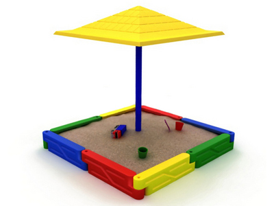 Удобная, классическая песочница квадратной формы впишется в любую детскую площадку, не займёт много места и будет очень красиво смотреться в любом уличном дворе. Бортики песочницы собраны словно из ярких, огромных блоков конструктора, что придаёт надёжной конструкции очень привлекательный, игрушечный вид. Песочница дополнена удобным, высоким квадратным зонтиком, который не будет мешать малышам и защитит их от летнего зноя, а песок – от весенних дождиков.