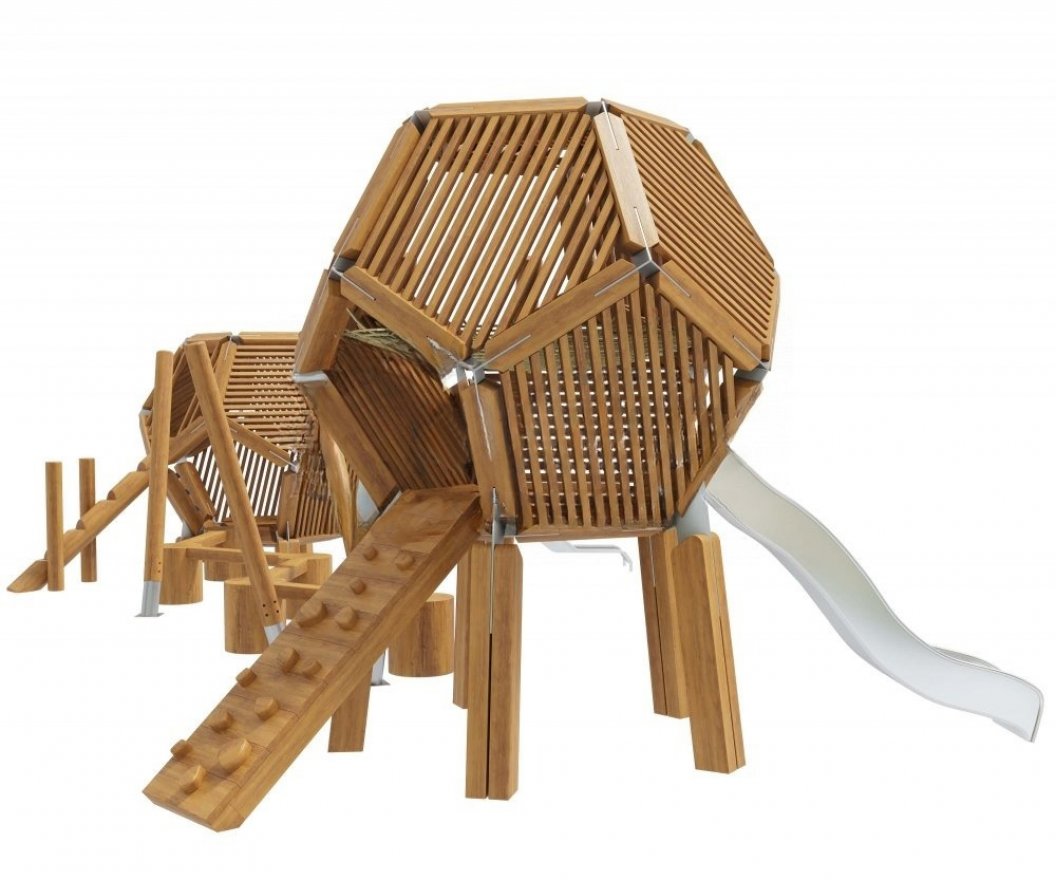 Основные элементы: игровые башни Д2700 и Д2400, прямые горки h1200 мм и h1500 мм, скалодром, лазательные элементы, гибкие лазательные элементы, стремянка.