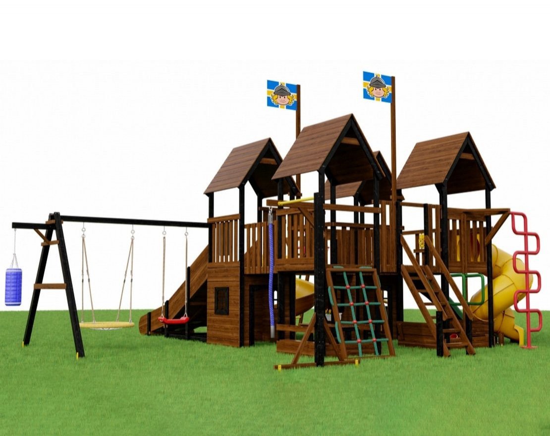 Эта площадка органично впишется в любой ландшафт и подарит детям любимое место для игр в любое время года!