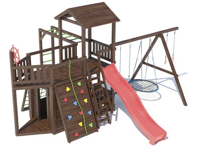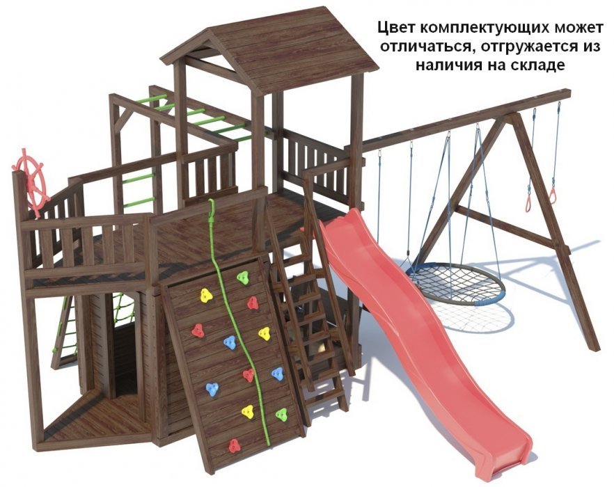 Рекомендуем дополнить модель подвесным оборудованием (гимнастический канат, подвесная лестница). Добавит ярких эмоций в развивающие игры ребенка бинокль, а спортивные занятия с ребенком поможет разнообразить турник и баскетбольное кольцо.