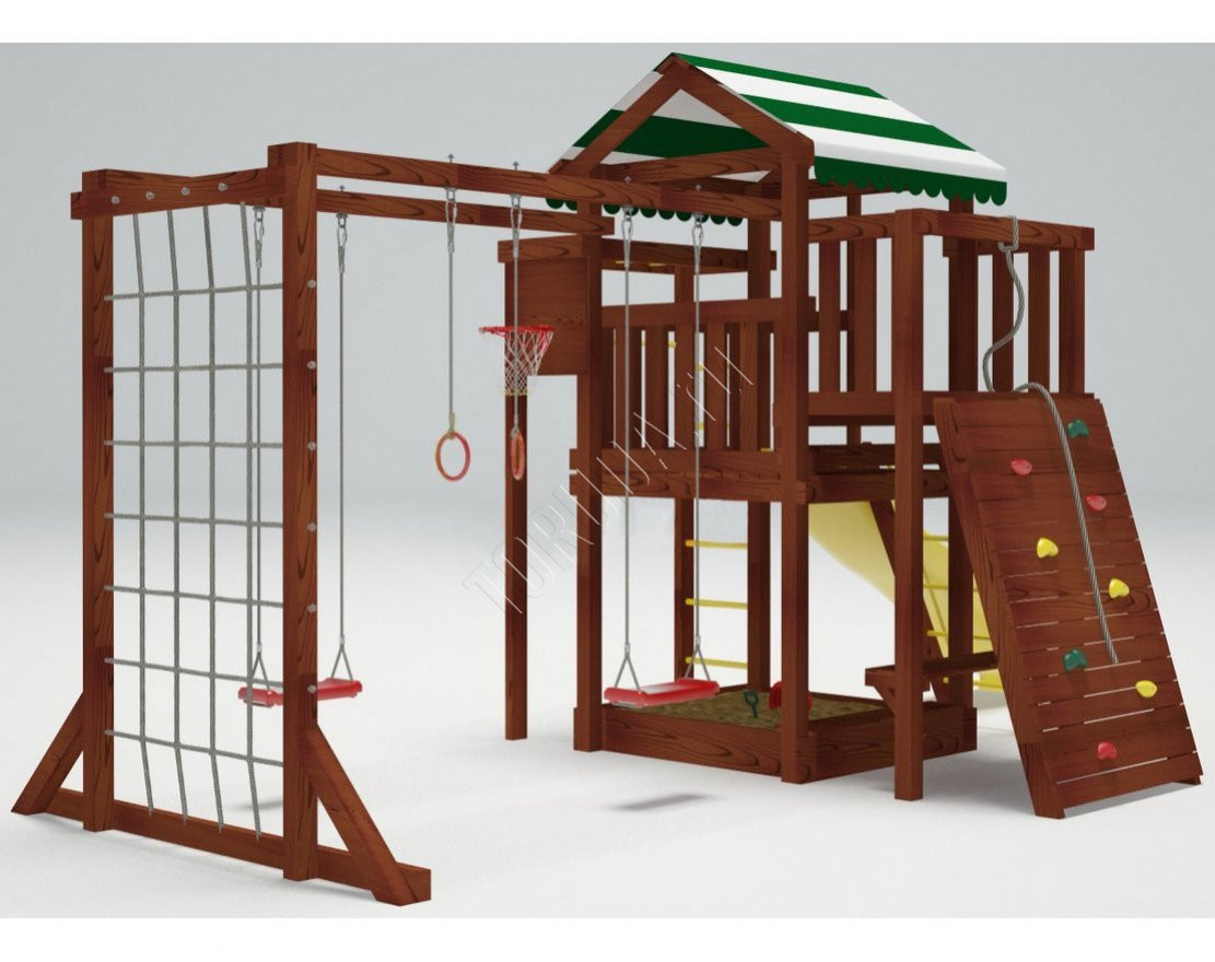 Это универсальный детский игровой комплекс, сочетающий в себе спортивные и развлекательные элементы. Он создан для того, чтобы ребёнок мог проводить время на свежем воздухе с пользой для здоровья, развивая физические навыки и фантазию.