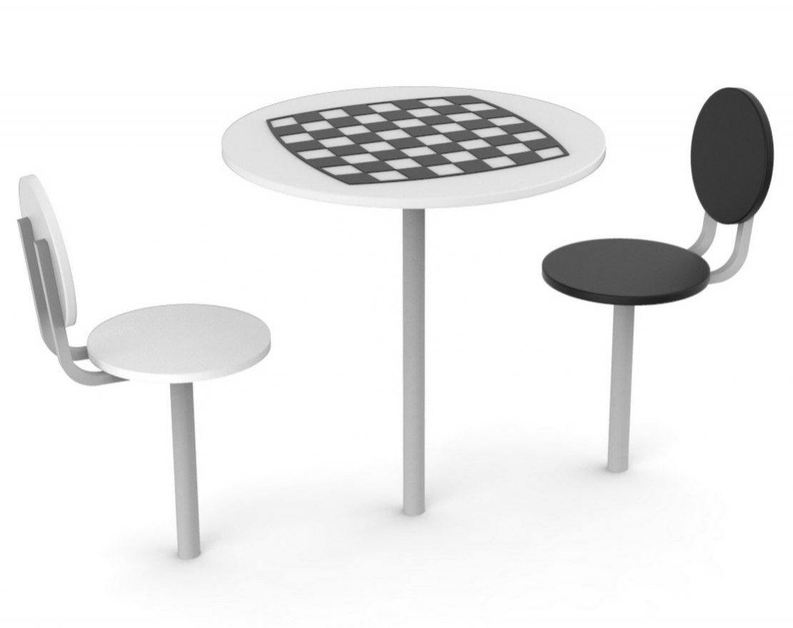 Шахматный стол предназначен для организации досуга на детских площадках, во дворах и парках. Стол отлично подойдет как для развивающих настольных игр в детских садах и школах, так и для приемов пищи в различных местах отдыха. Шахматный стол состоит из двух стульев и столешницы с нанесением изображения шахматной доски.