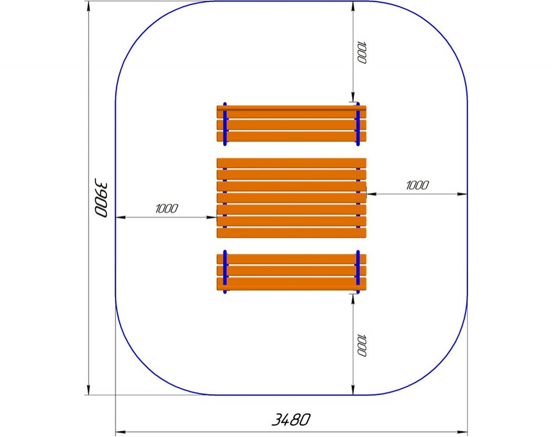 Занимаемая площадь с учетом зон безопасности и приземления: 3900 × 3480 мм.