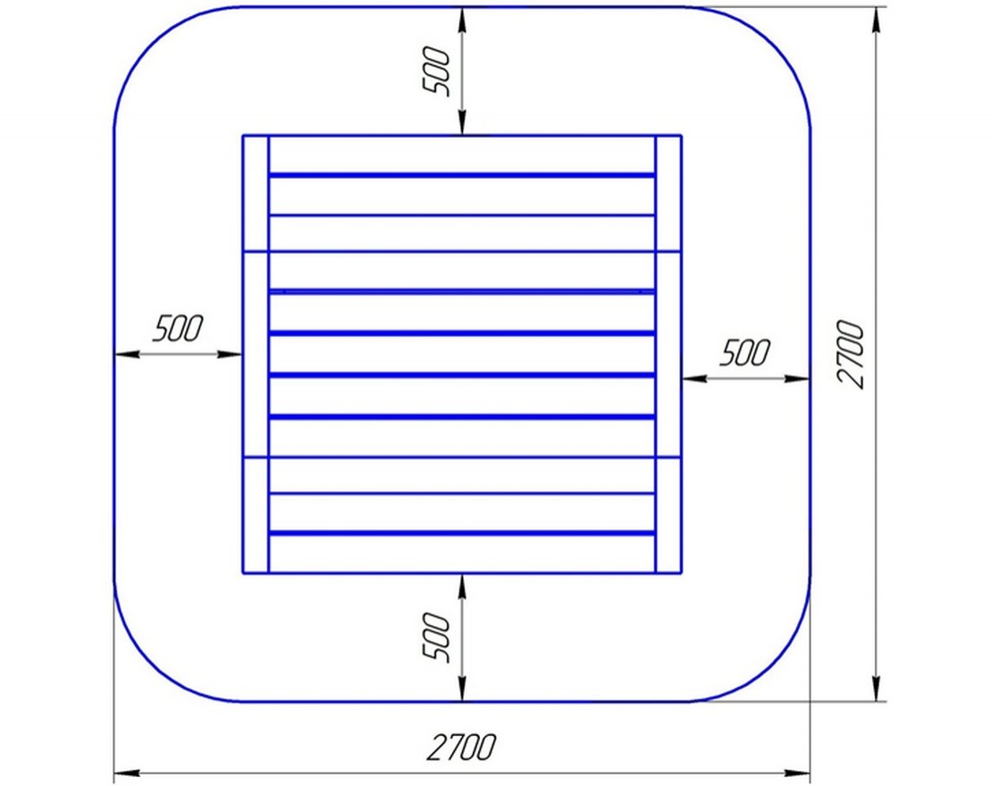 • Зона безопасности: 2700 × 2700 мм.