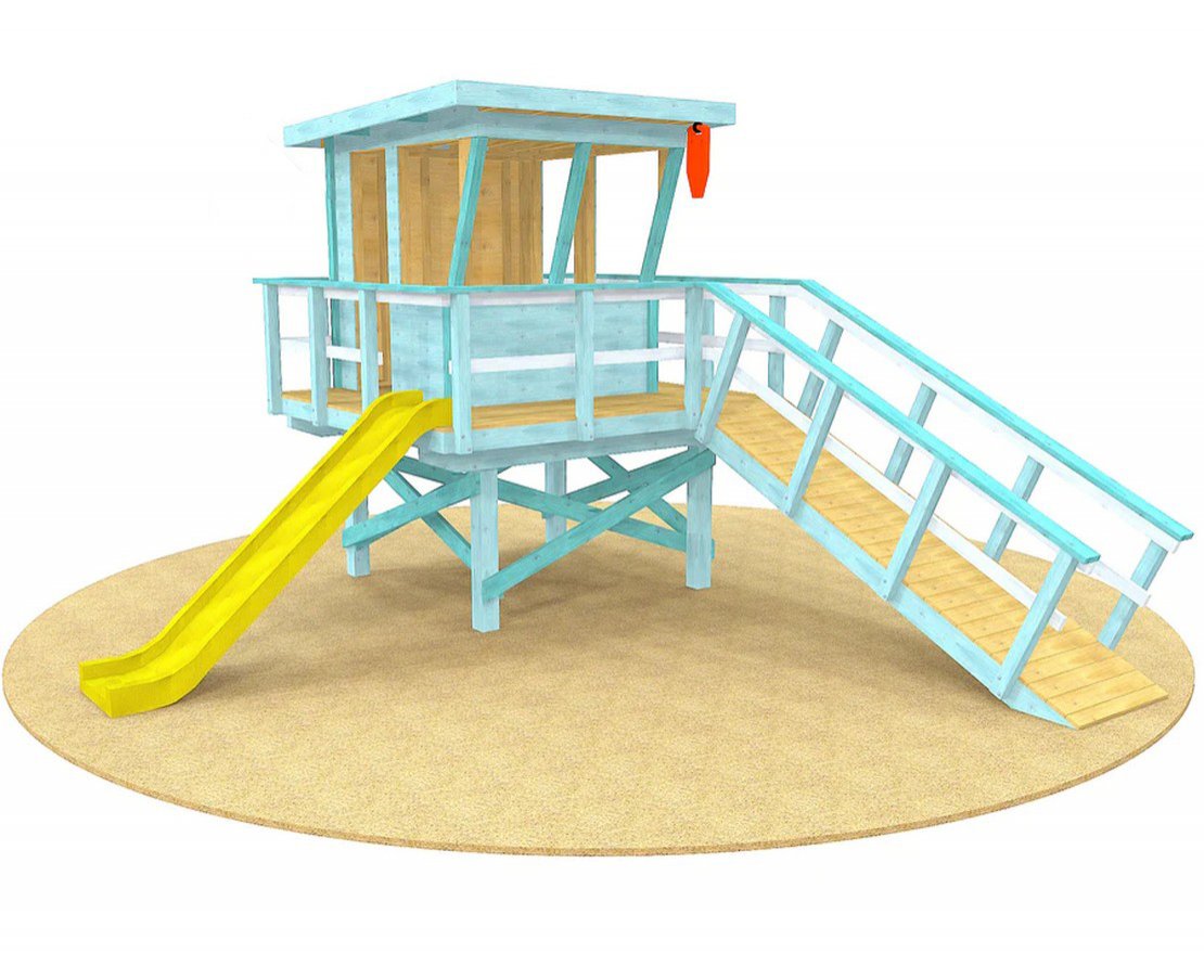 Добавьте немного Лос-Анджелесского колорита на свой задний двор с помощью игровогокомплекса Башня спасателя. Разработанный в соответствии с реальными западными башнями спасателей. Наслаждайтесь солнцем или отдыхайте в тени, используя центральную закрытую зону. Доступ к пандусу позволяет легко подниматься и спускаться.