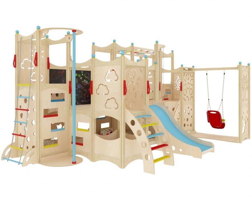 Игровая конструкция включает все модули, необходимые для укрепления всех групп мышц, социального развития малышей. Им даже целого дня не хватит, чтобы изучить этот сказочный игровой замок.