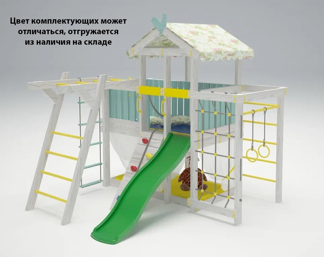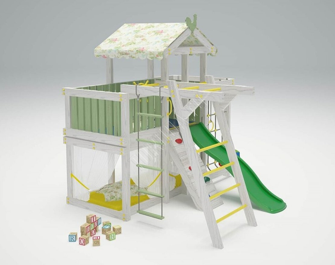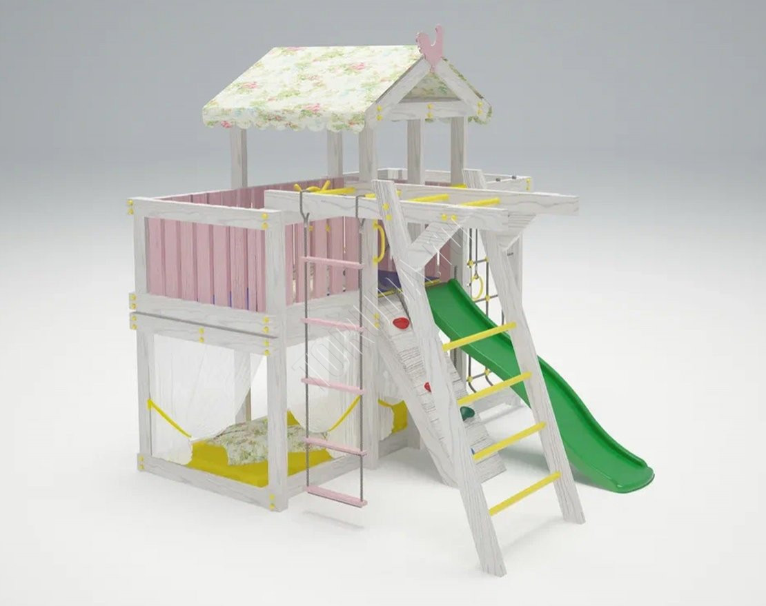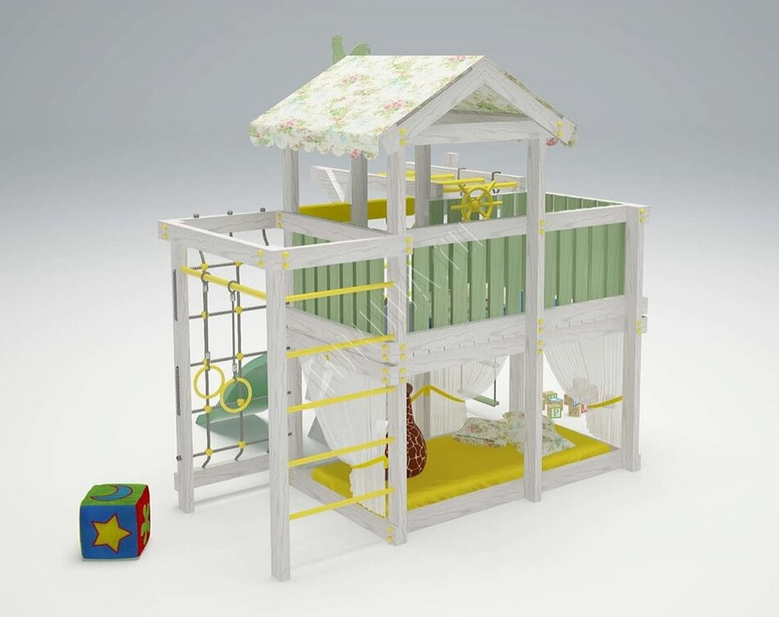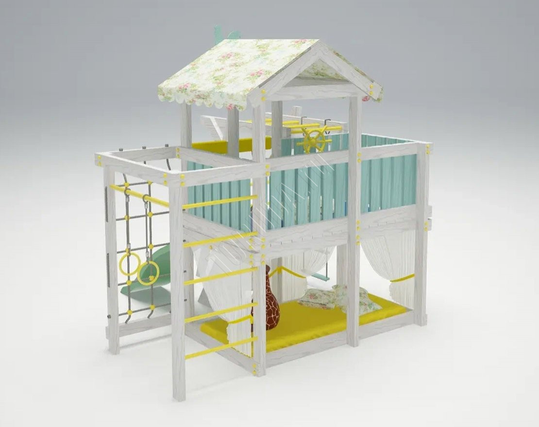 Двухъярусная площадка – разработана специально для большой семьи. Прочный каркас из массива хвойных пород выдержит нескольких детей.