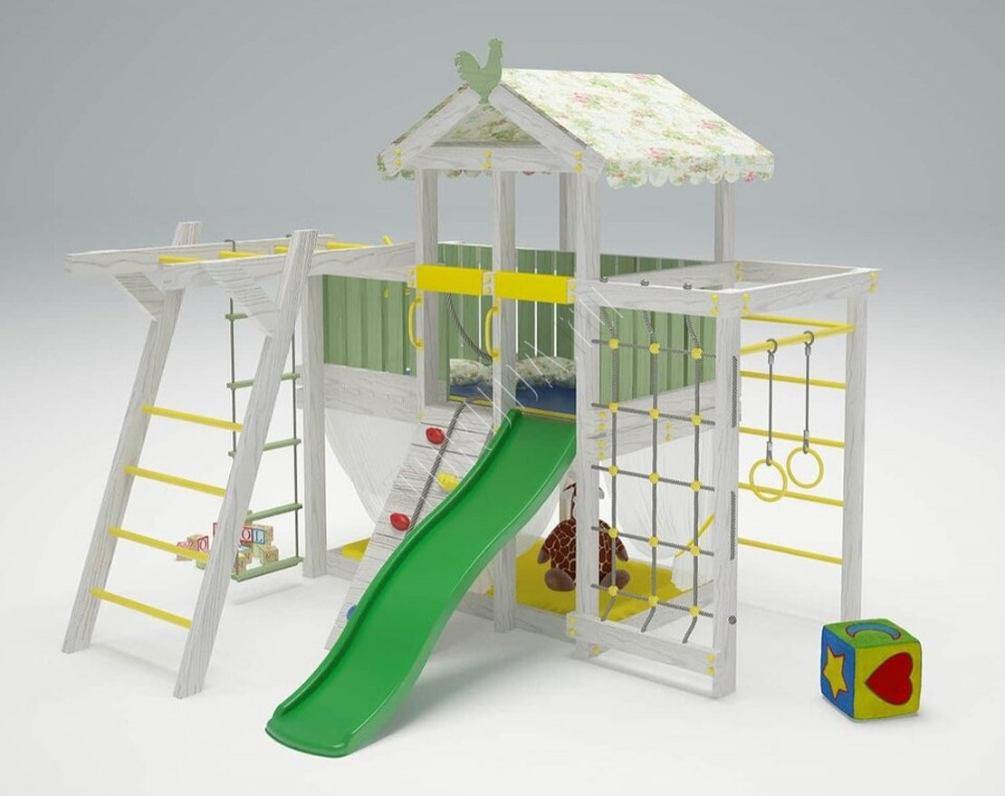 Эту игровую спортплощадку можно устанавливать в обычной квартире или в загородном доме. Дерево защищено двухслойным декоративным лакокрасочным покрытием.