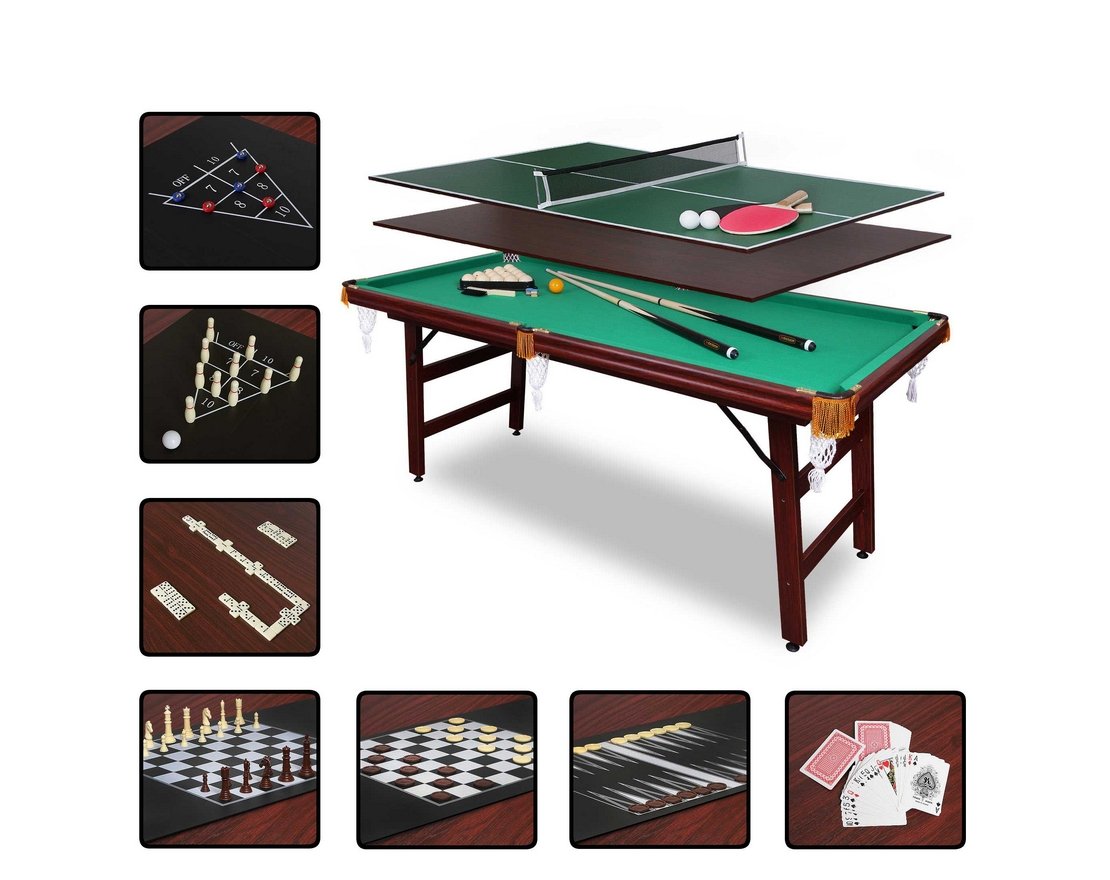 Бильярдный стол Fortuna Русская пирамида 6 футов 9 в 1 - это многофункциональный игровой стол, включающий 9 игр: русский бильярд, шашки, шахматы, нарды, настольный теннис (пинг-понг), кегли, шаффлборд, игральные карты и домино.