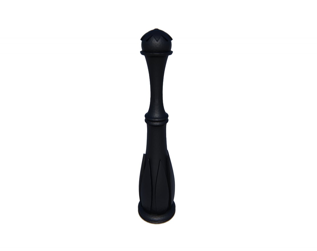 Декоративный тротуарный столбик очень изящный. Рельефные элементы у основания выполнены в виде сомкнувшихся листьев. Верхнюю часть изделия венчает шар, который благодаря фигурной накладке смотрится как лесной орешек. Ограждение отлито из чугуна. Его поверхность защищена специальным грунтом и порошковой полимерной краской. Цвет декора можно изменить по желанию заказчика.