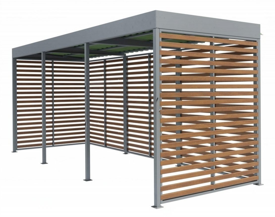 Панели навеса: Брус из хвойных пород древесины. Покрытие - атмосферостойкая лессирующая акриловая пропитка с лаком.