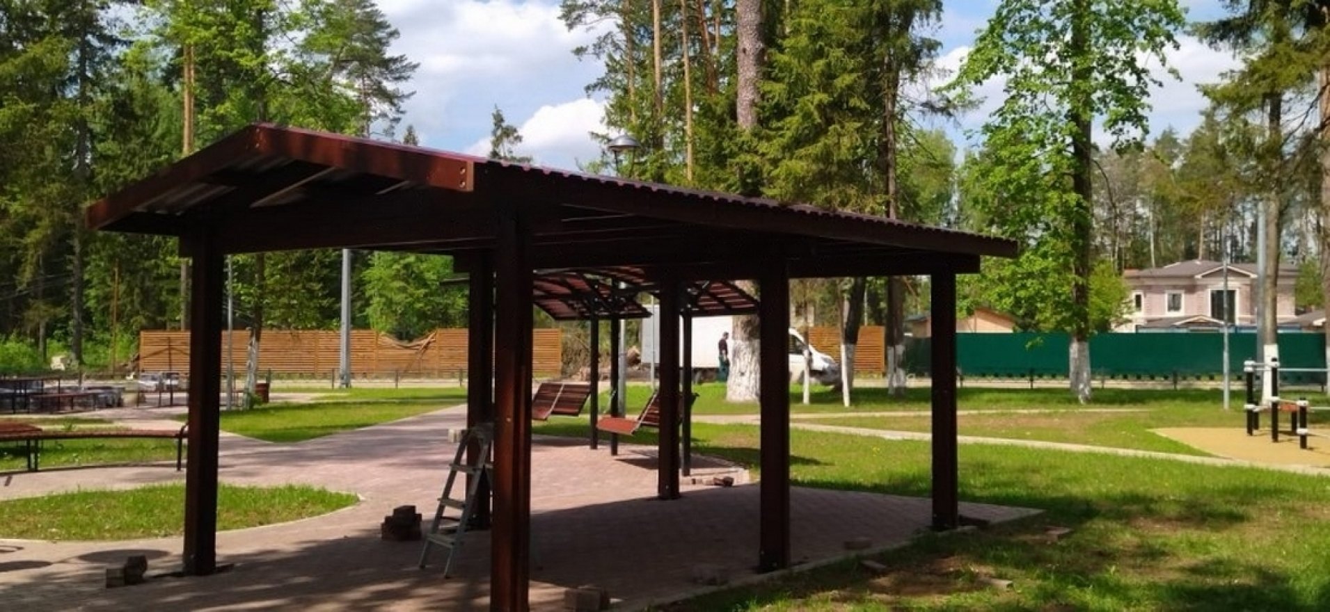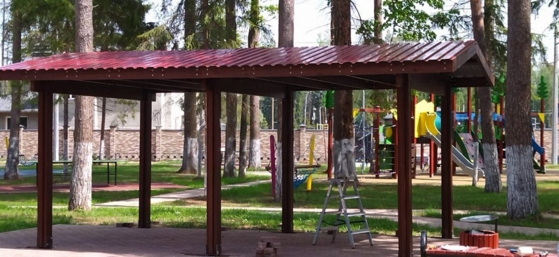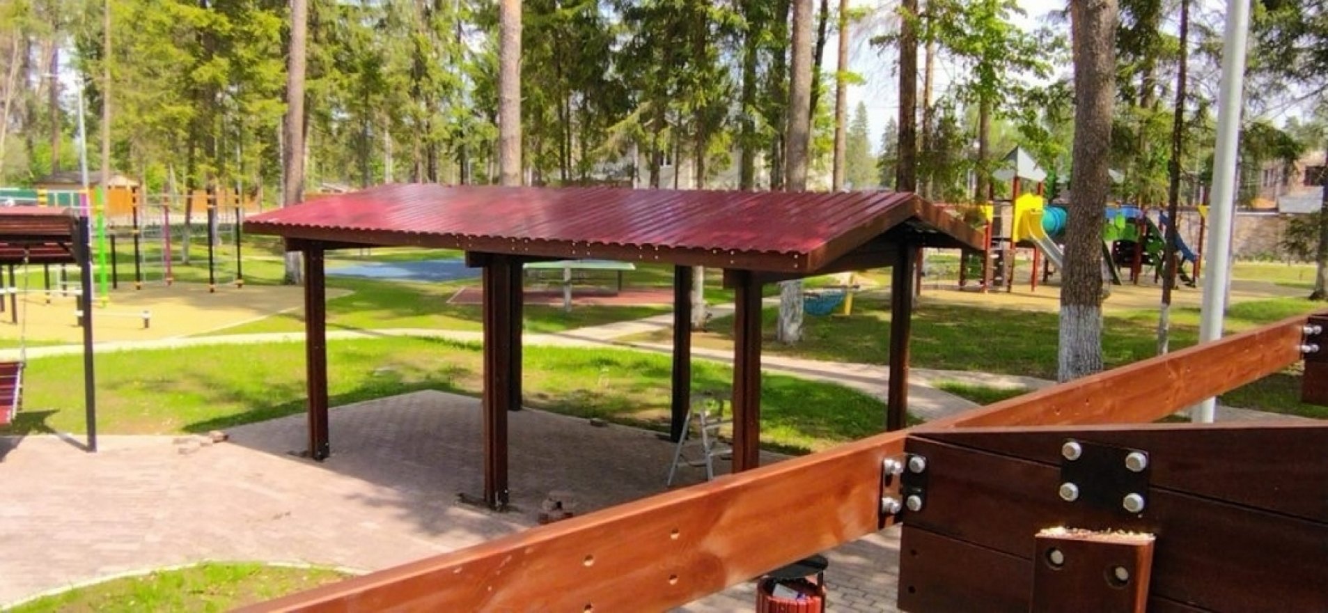 Деревянные элементы: Брус из хвойных пород древесины. Покрытие - атмосферостойкая лессирующая акриловая пропитка с лаком. Стандартные цвета: Палисандр, Махагон, Тик.