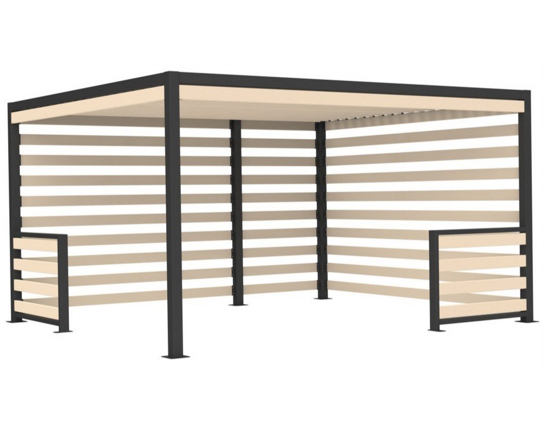 Парковый навес на металлическом каркасе с использованием натурального дерева (лиственницы). Устанавливается в парках, скверах, придомовых территориях и др.местах общественного пользования.