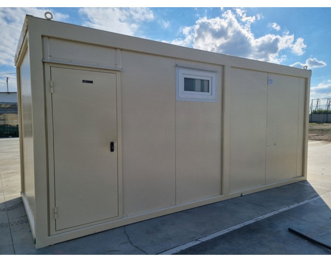 Раздевалка рассчитана на 10 человек. Для удобства переодевания здесь есть лавочки, металлические шкафчики для одежды с замками, настенные крючки. Контейнер раздевалка имеет все необходимое оборудование и полностью готов к использованию.