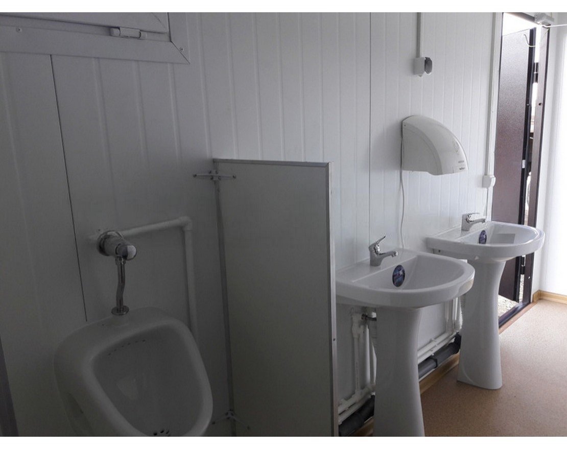 Перед вами модель. Это павильон, предназначенный для использования мужской частью населения. Он разделен на несколько отделений с унитазами, писсуарами и раковинами. Комплектация определяется заказчиком, при желании унитазы могут быть заменены на Чаши Генуя.