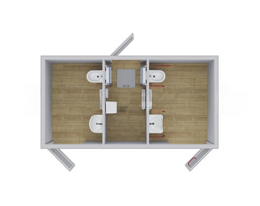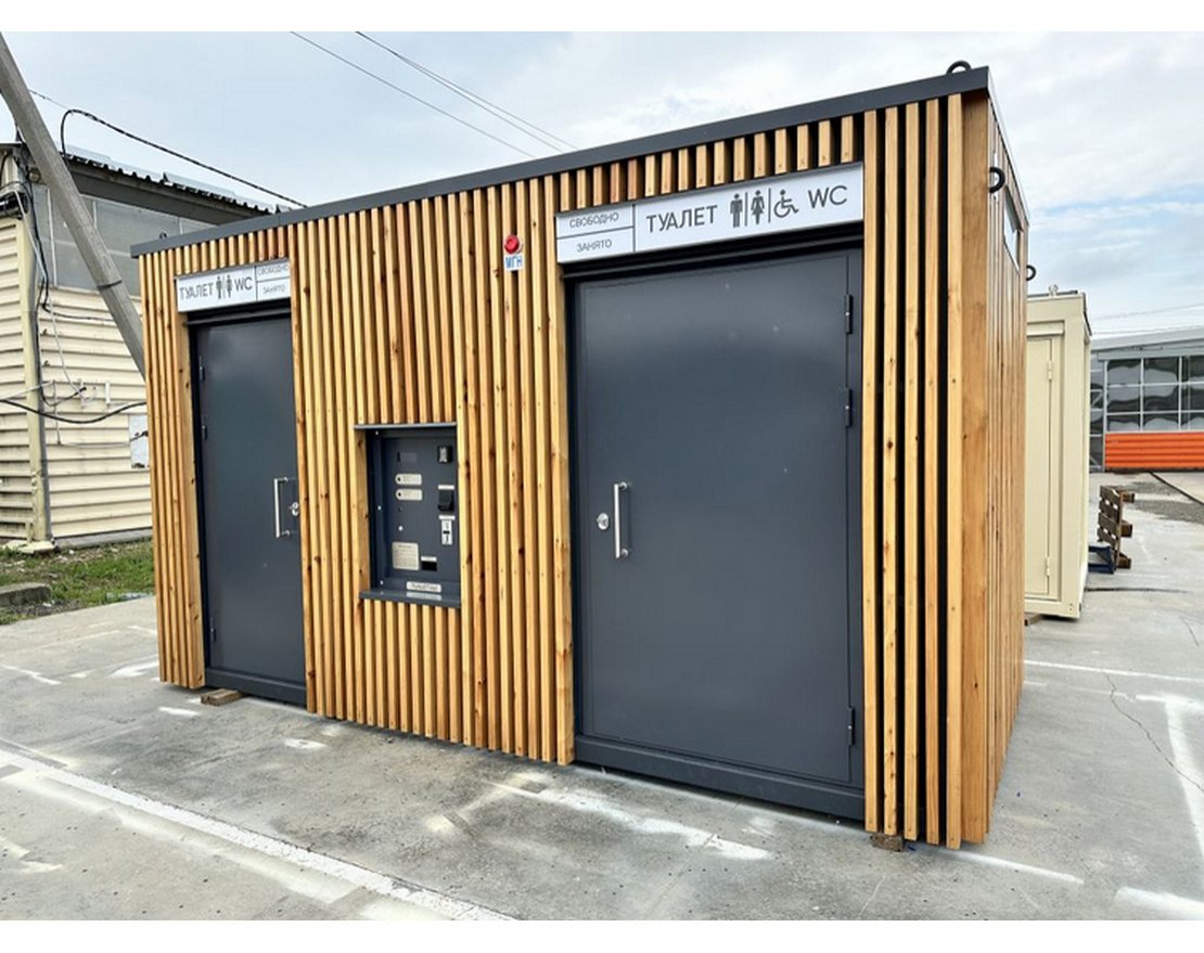 Туалетный модуль разработан специально для установки в парках и скверах, имеет три отделения.