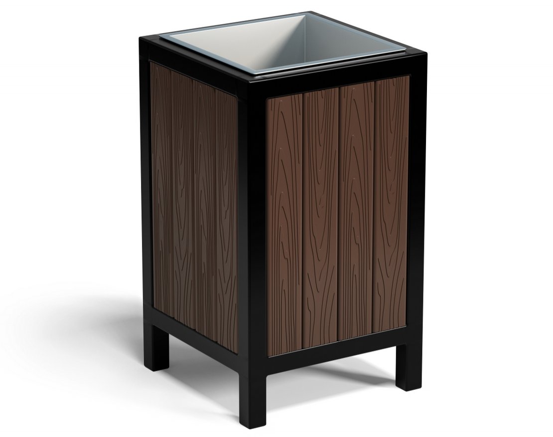 Функциональная уличная урна на металлокаркасе может являться как отдельным элементом для благоустройства территорий, так и прекрасным дополнением к парковой скамье. Для удобства пользования урна оборудована съемным контейнером для мусора.