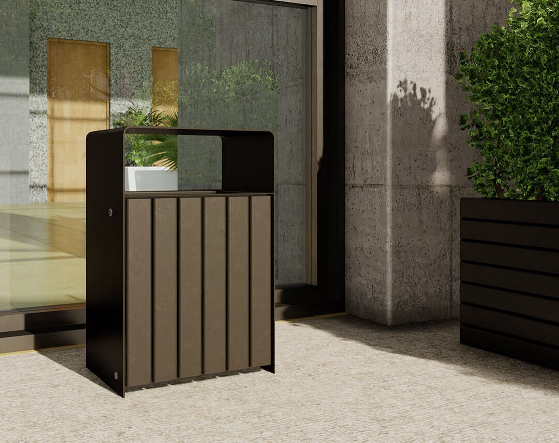 Практичная уличная урна с защитой в виде навеса сверху от попадания осадков — залог чистоты городского ландшафта. Доступ к контейнеру с мусором по индивидуальному замку.
