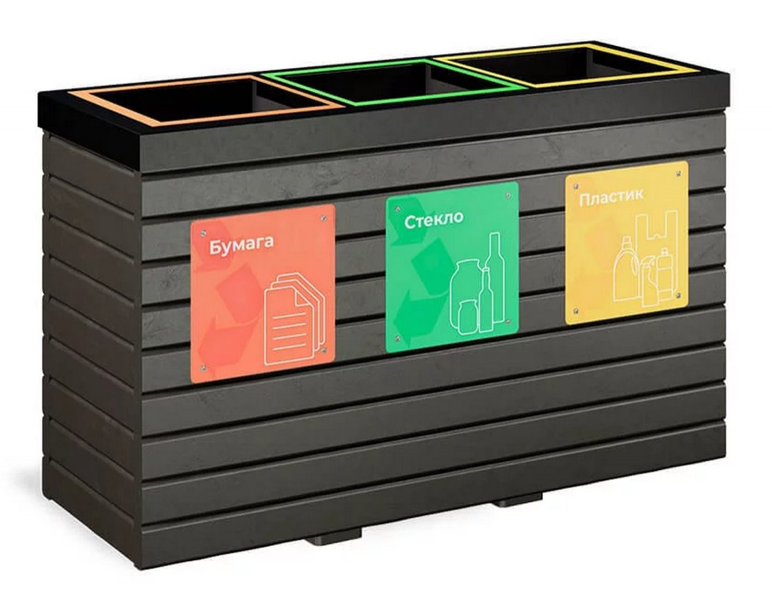 Урна для раздельного сбора мусора предназначена для сбора различных видов отходов, подходящих для переработки – пластика, бумаги, стекла. Он отличается геометричной формой и минималистичным дизайном.
