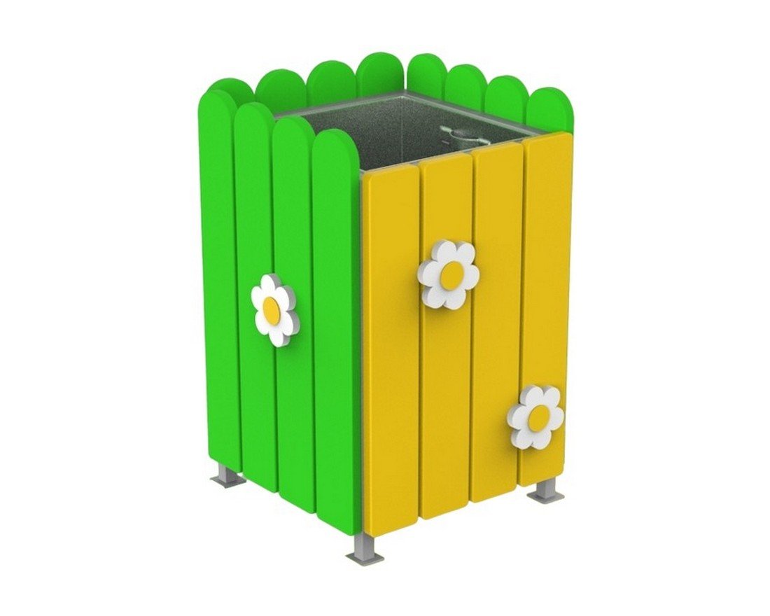 Уличная урна для детской площадки поможет поддержать чистоту не только в вашем дворе, но и на детских площадках, в парках, общественных местах и зонах отдыха. В качестве емкости для урны используются оцинкованные вкладыши. Урна представляет металлический каркас с окрашенными планками.