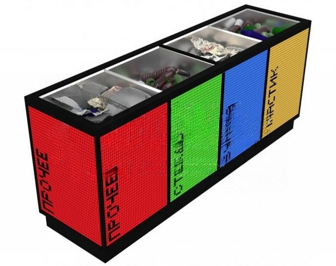 В активном состоянии урна может принимать любые нужные владельцу цвета и текстуры – статичные или анимированные, которые могут меняться в зависимости от окружающего интерьера, фирменного стиля организации, праздника или даже погоды. Вы сможете в любой момент самостоятельно назначать секции для раздельного сбора мусора через Мобильное приложение.