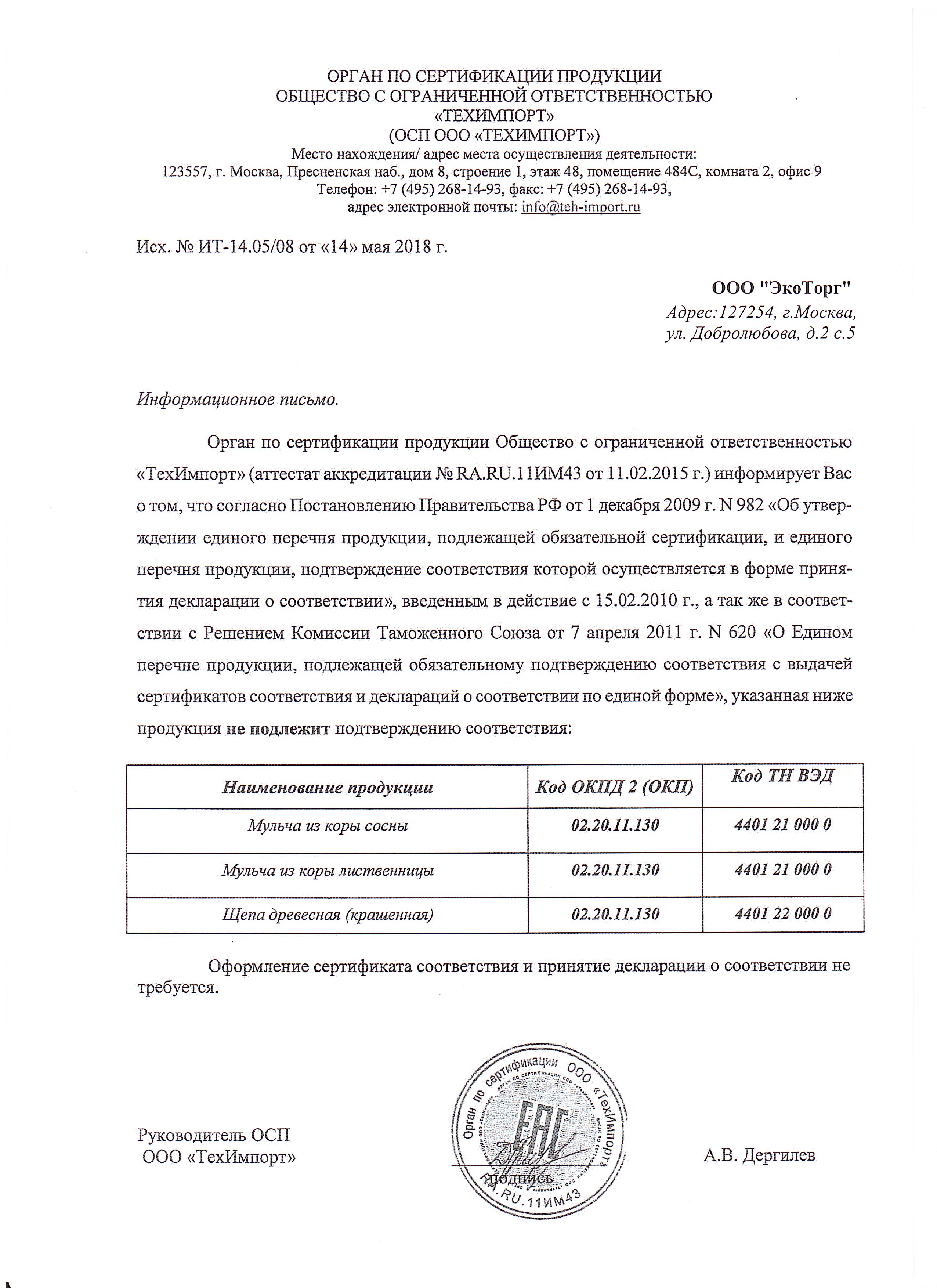 Мы упаковали продукцию в прозрачные мешки объемом 60 л без маркировки. В такой упаковке кора лиственницы любой фракции, в т.ч. 2–5 см, может хранится не менее года в прохладном помещении или на улице.