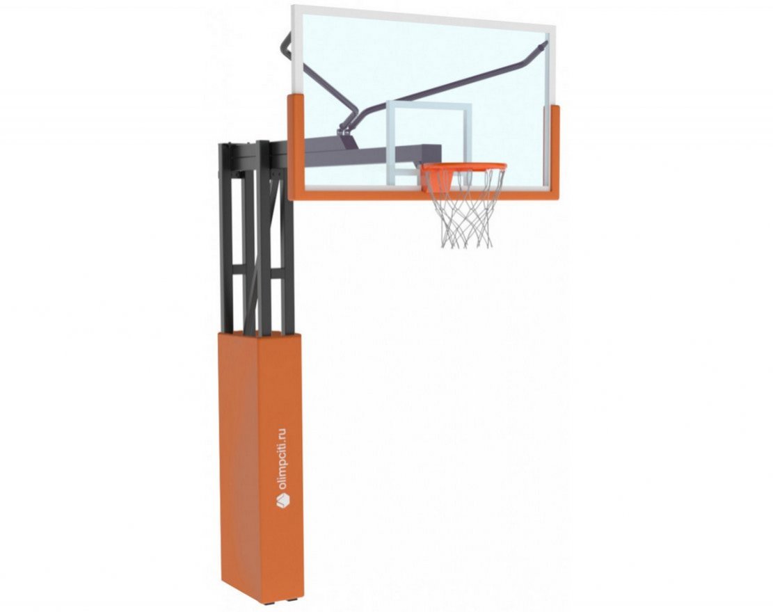 Стойка баскетбольная усиленная представляет собой сборную конструкцию, состоящую из опорной стойки, балки и двух стяжек. Стойка устанавливается на площадке путём бетонирования и предназначена для крепления баскетбольного щита с кольцом. Крепление балки к столбу осуществляется при помощи болтовых соединений.