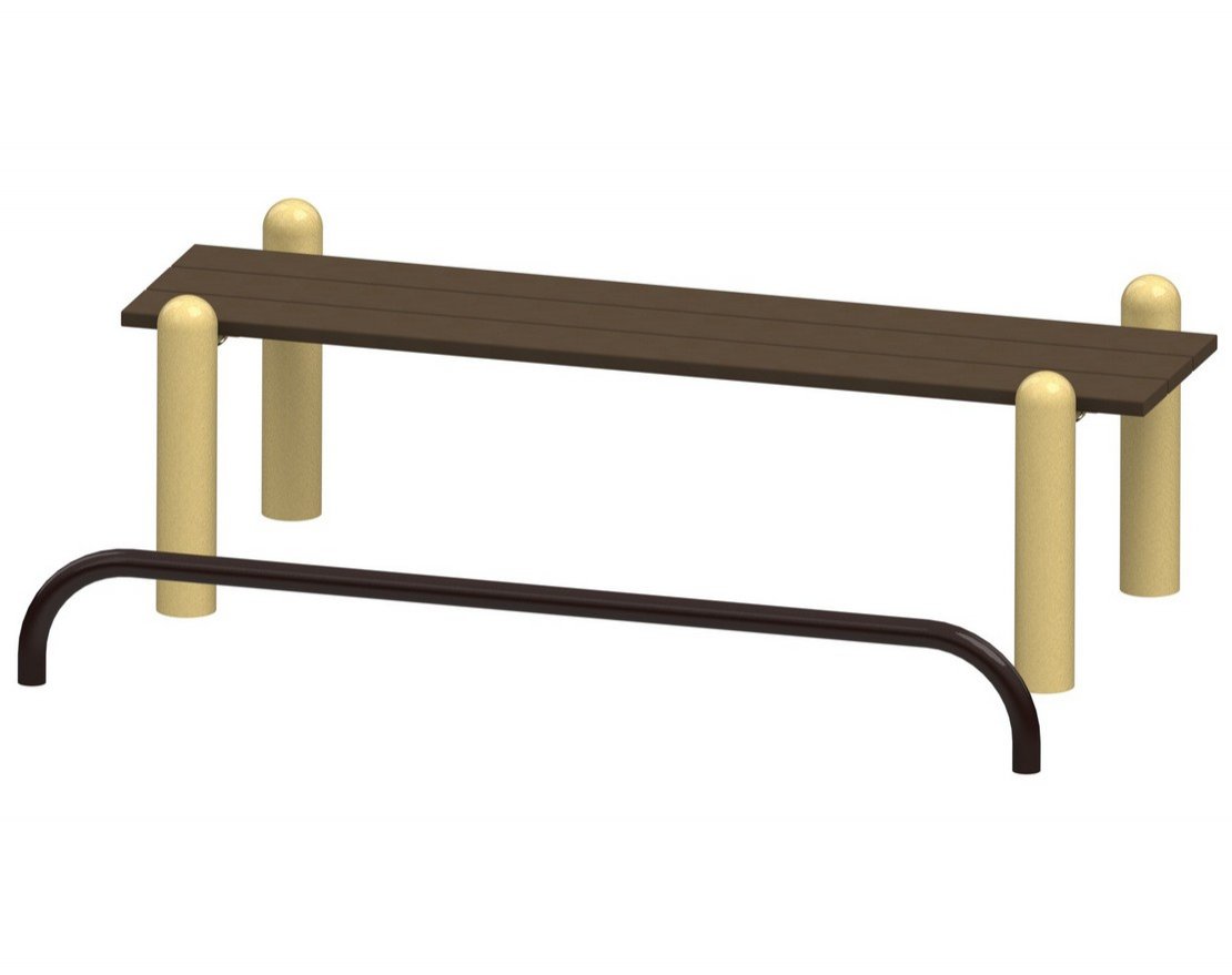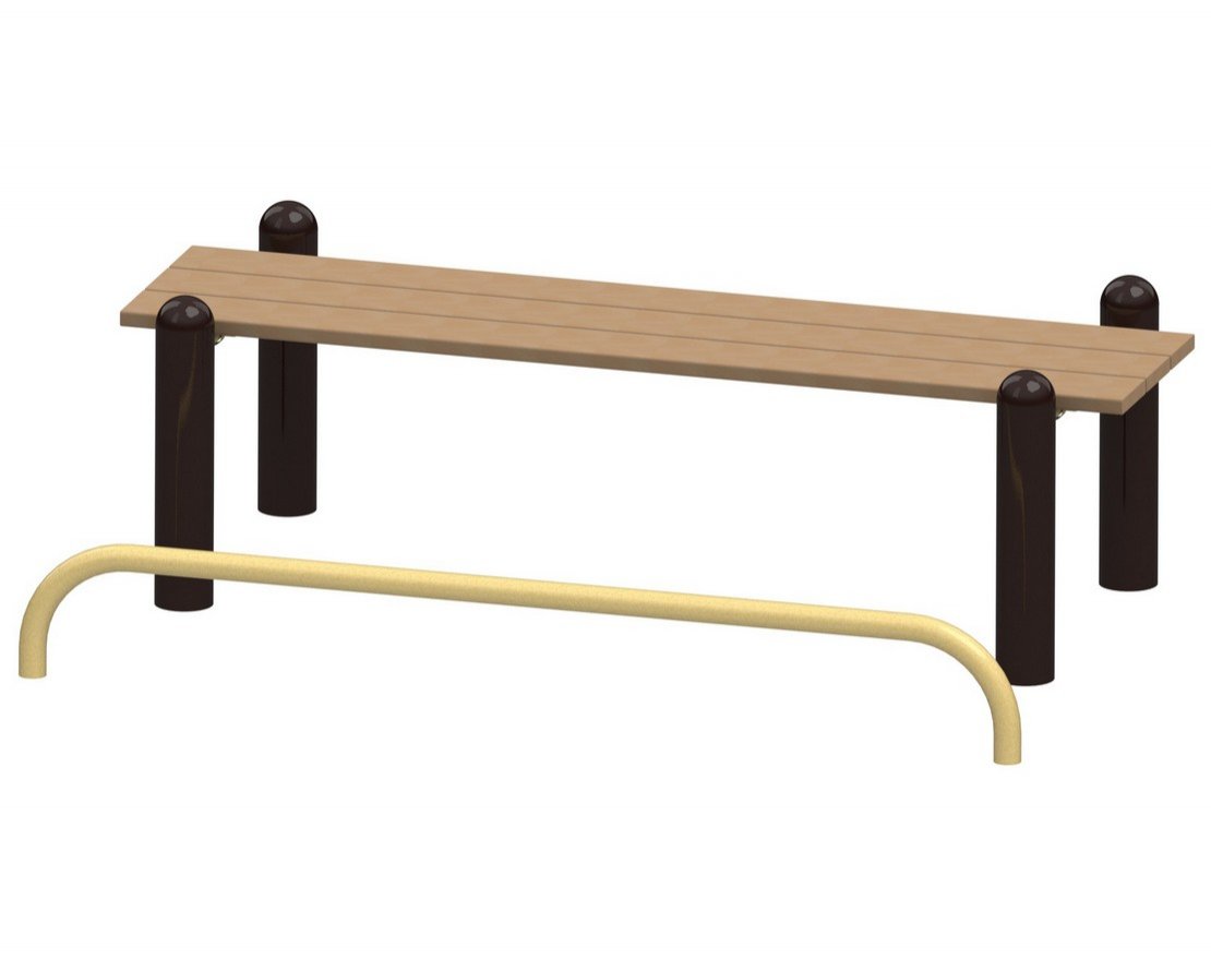 Стойки и упор производятся из стали, обладают высокой прочностью и долговечностью. Возможно изготовление опорных стоек разного диаметра (76мм, 89мм, 108мм). Металлические элементы покрываются порошковой краской, цвет любой на выбор по таблице RAL.