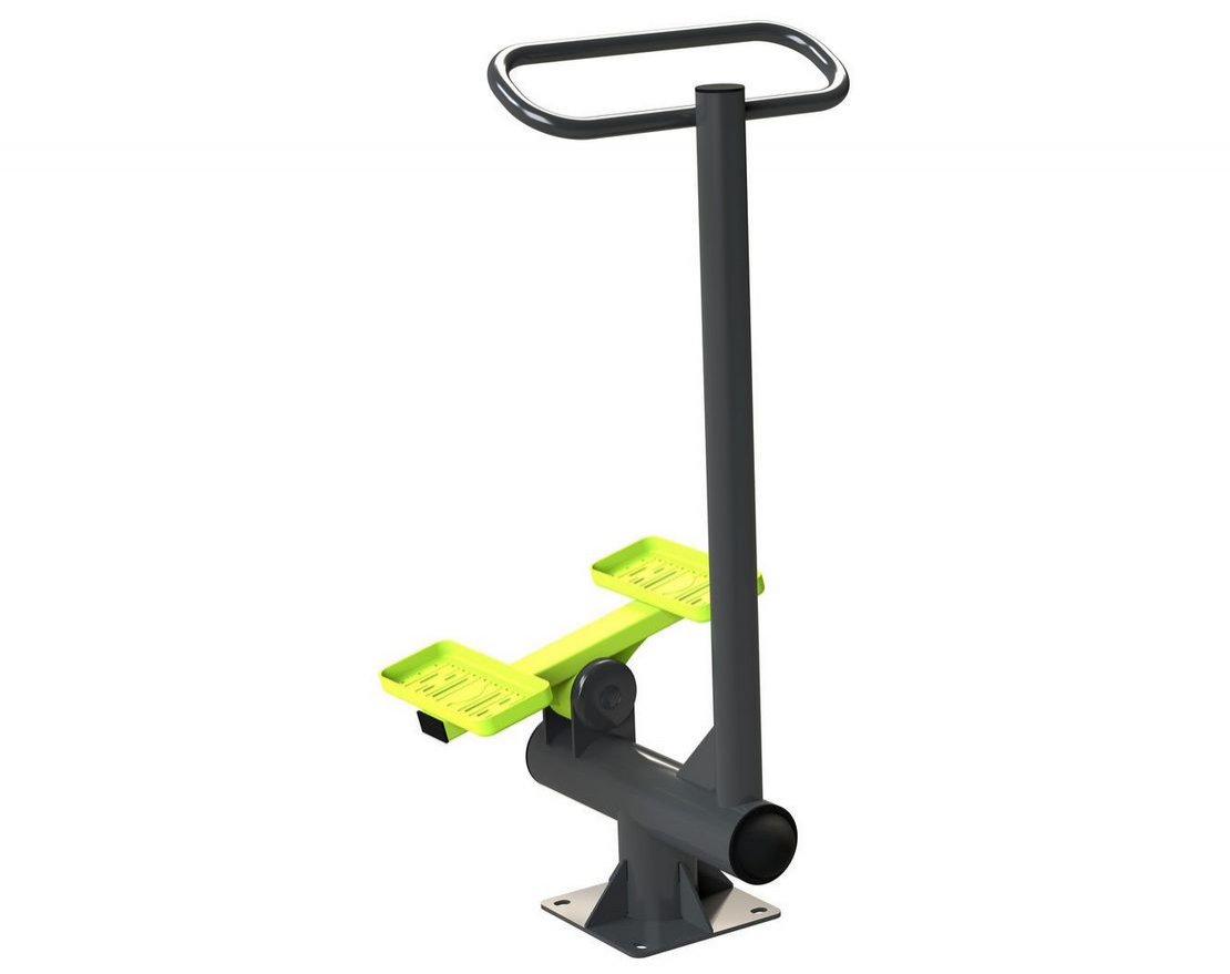 Конструктивно тренажёр состоит из рамы, и установленного на узел ограниченного вращения рычага с ногоступами. За счёт применения специально разработанных узлов с ограничением вращения, в конструкции отсутствуют открытые отбойные элементы, что ведёт к уменьшению травмоопасности.